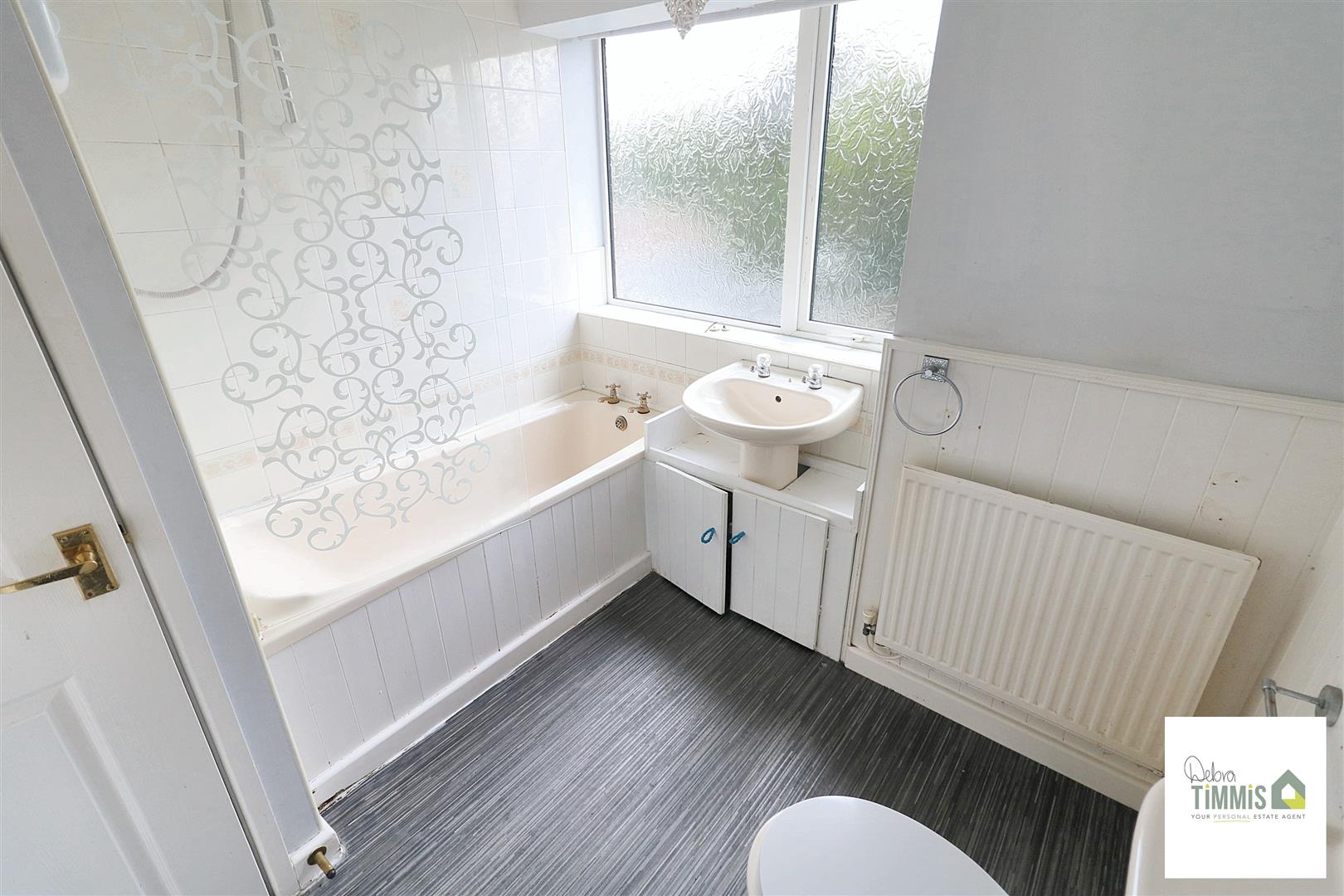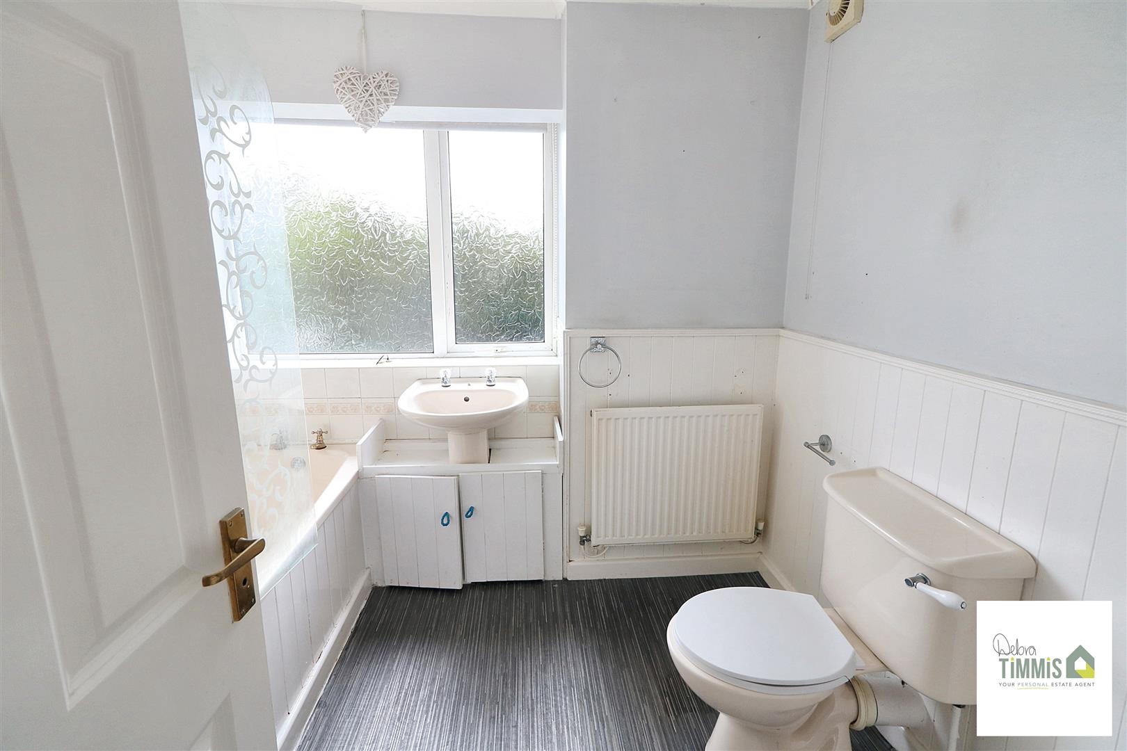 Coloured suite comprises, panelled bath with Triton shower unit over, pedestal wash hand basin and low level WC. Part tiled and part panel walls. Double glazed window. Airing cupboard.