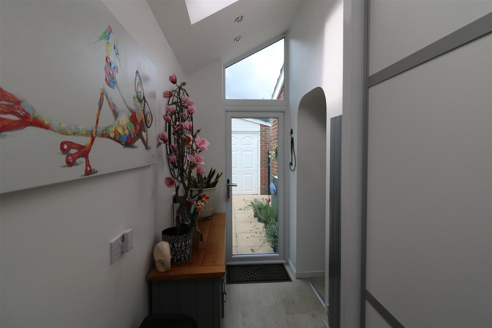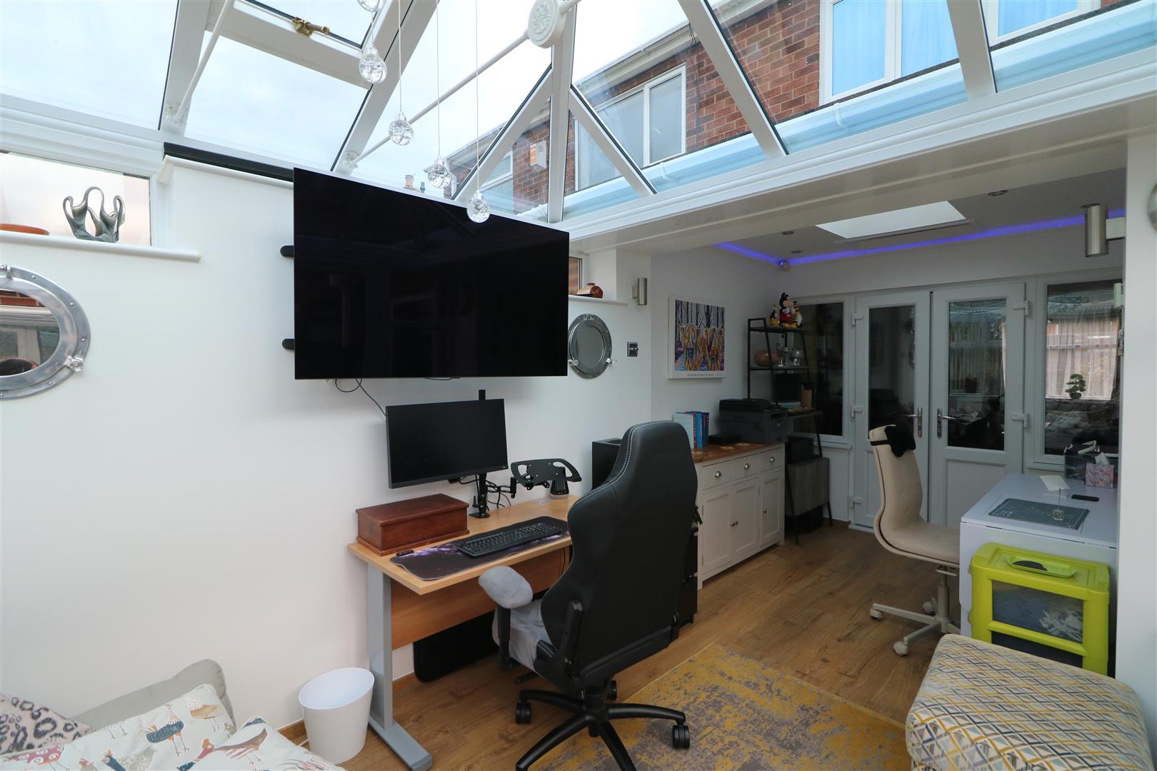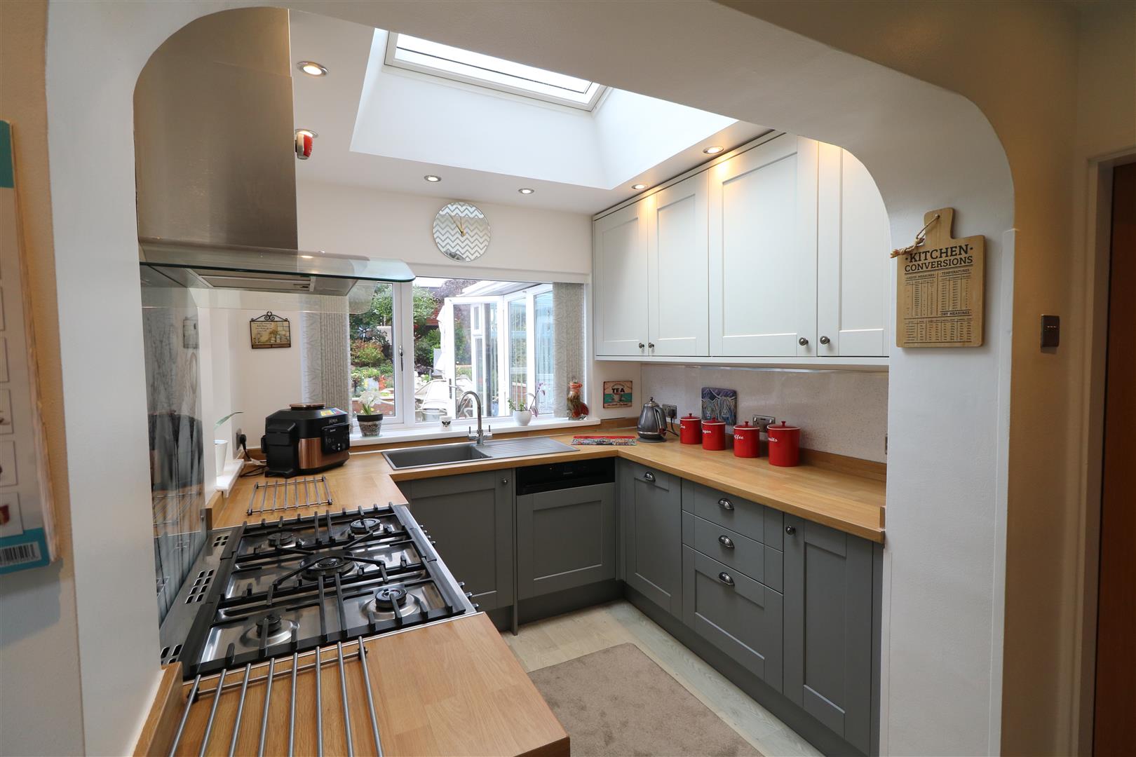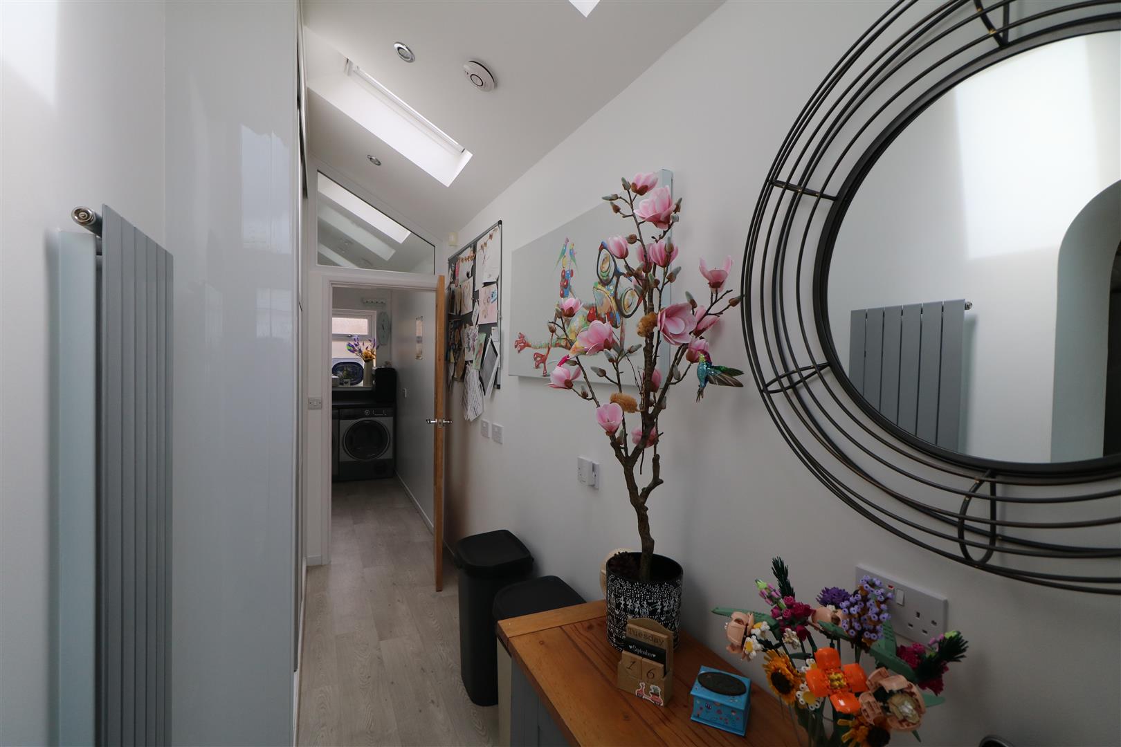 Double glazed door to the rear aspect. Built-in storage cupboards. Feature radiator. Two sky lights, Access to the utility.