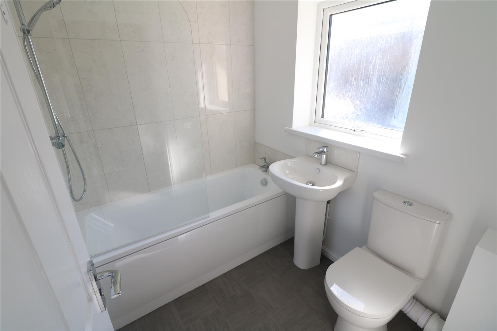 Beautifully presented fitted suite comprises, panel bath, mains shower over with water fall shower head, pedestal wash hand basin and low level WC. Part tiled walls. Inset ceiling spot lights. Heated towel rail. Double glazed window.