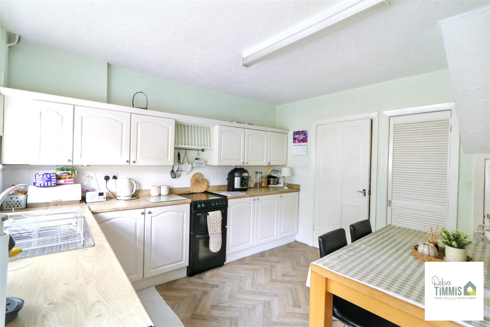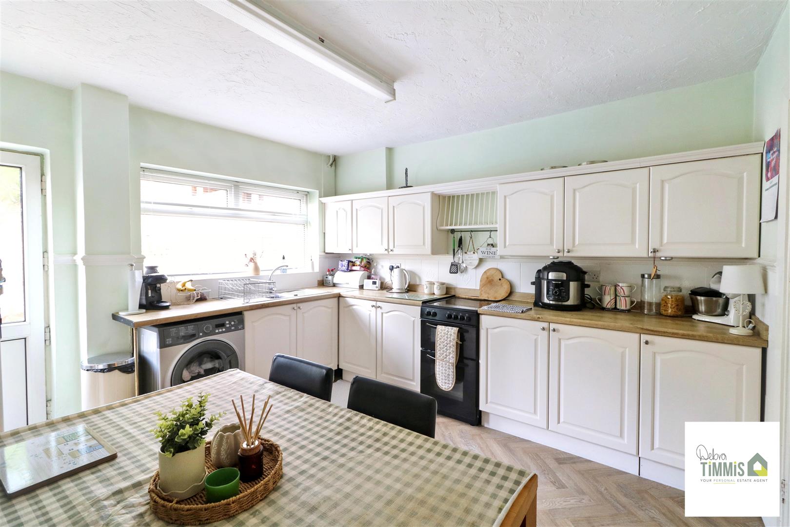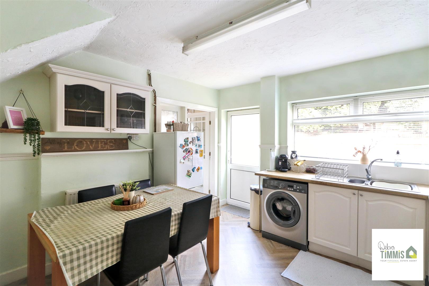 Fitted kitchen with wall mounted units, worktops incorporating cupboards below. One and half bowl stainless steel sink, drainer and mixer tap. Part tiled splash backs. Space for cooker. Useful storage cupboards. Space for breakfast table. Double glazed window and Upvc door to the rear aspect.
