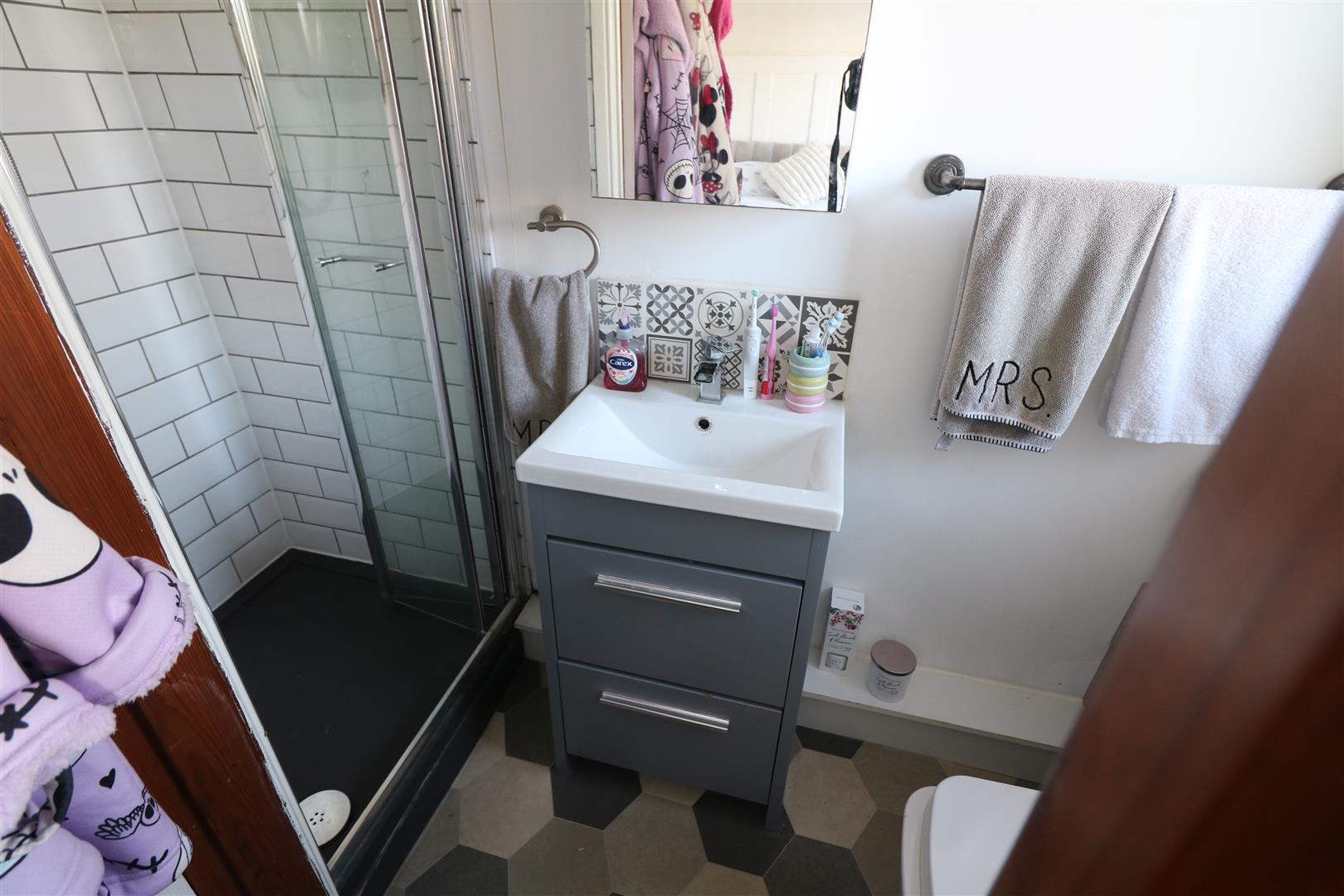 Double glazed window to the rear aspect. Suite comprises, shower cubicle housing shower, vanity wash hand basin and low level WC.