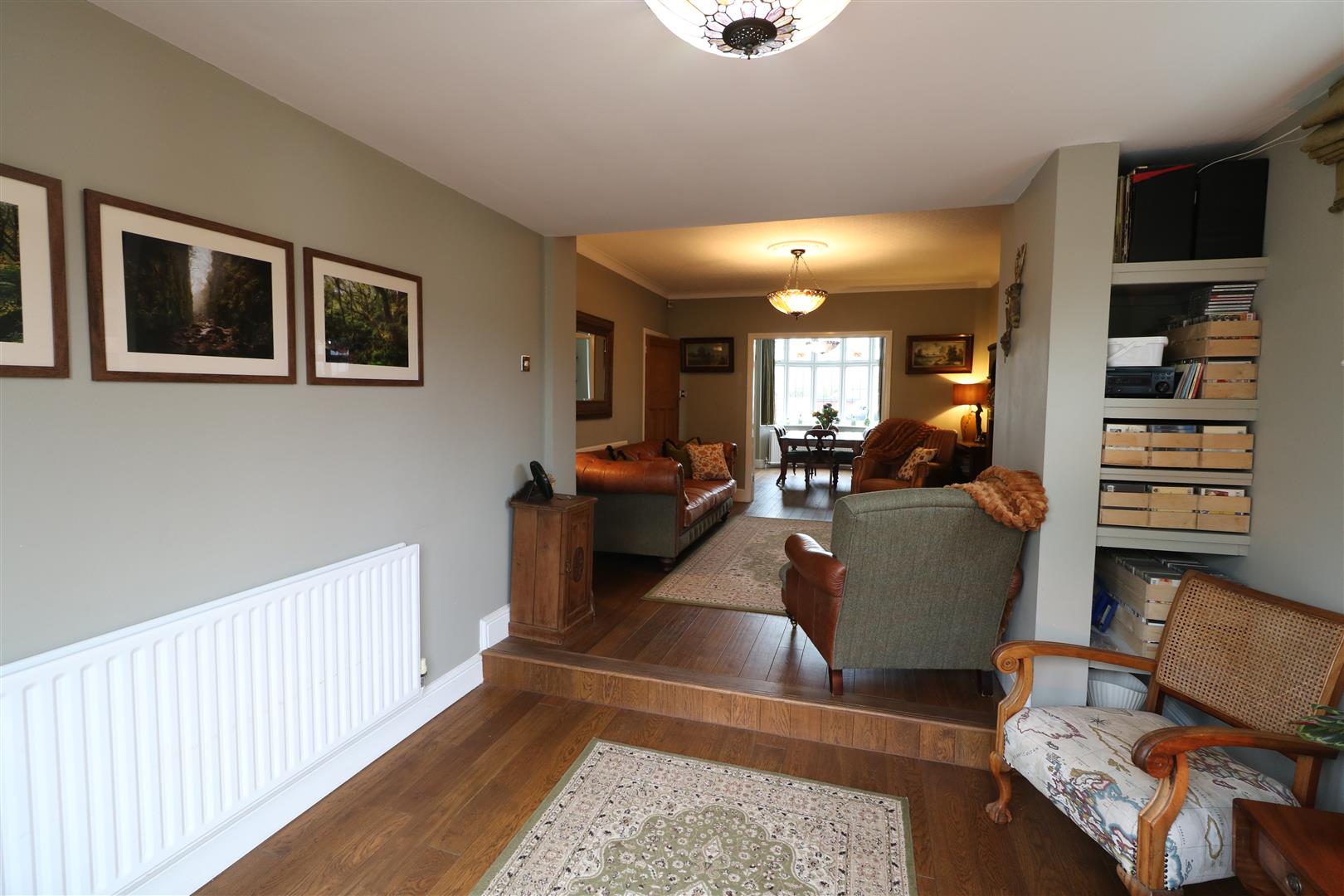 Feature fireplace inset and hearth housing gas fire, Radiator. Open access into the Sitting Area.