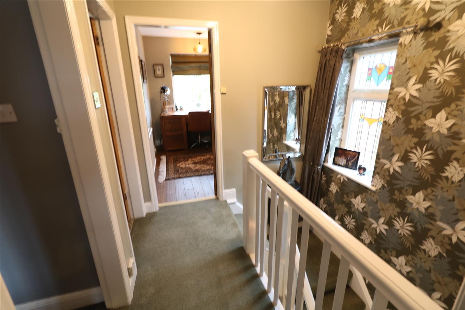 First FloorLandingFeature leaded/stained glass window to the side aspect. Loft access.