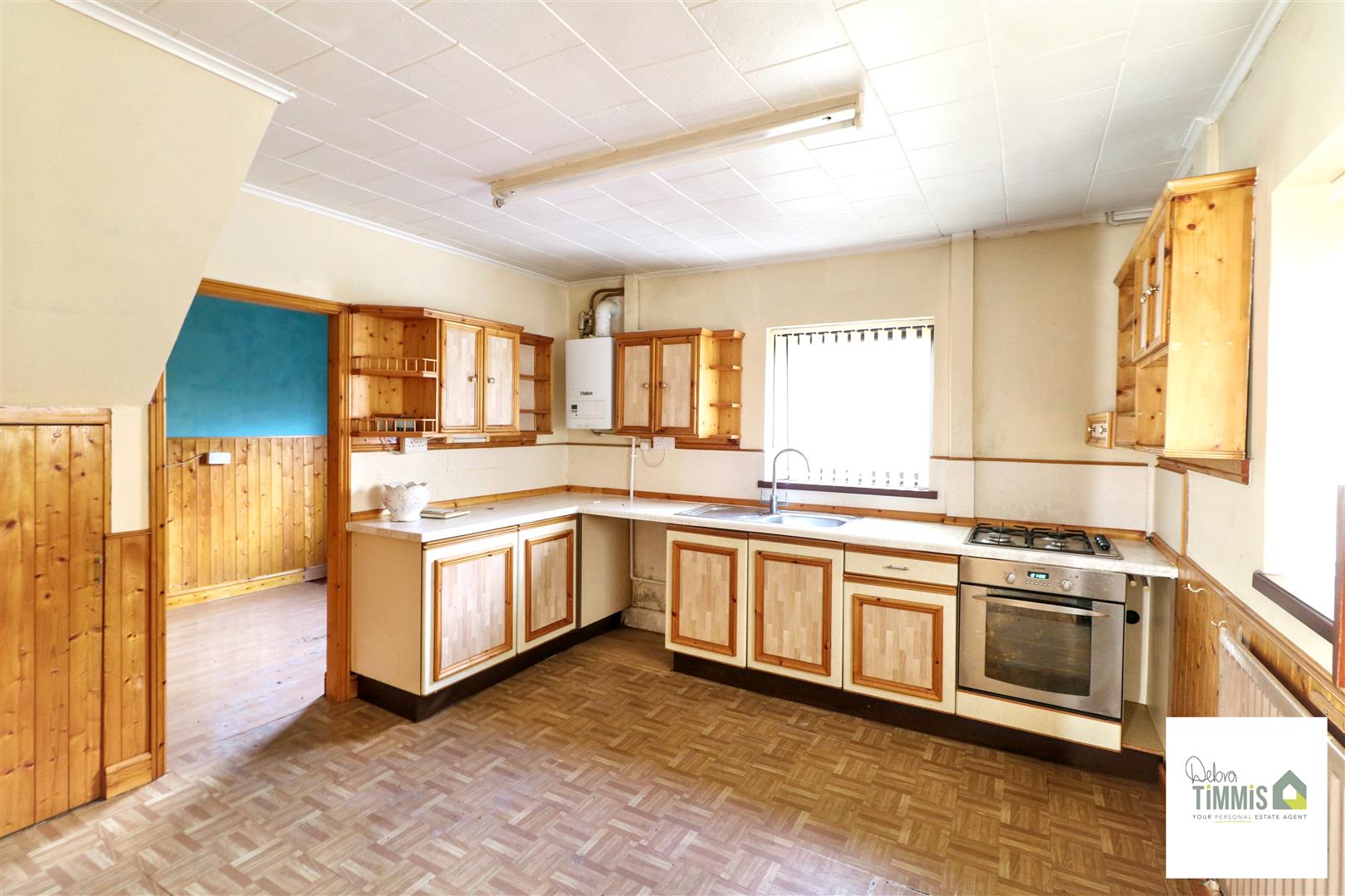 Fitted kitchen with a range of wall mounted units, worktops incorporating drawers and cupboards below. Stainless steel sink with single drainer, mixer tap. Four ring gas hob and built-in oven. Wall mounted gas central heating boiler. Space for washing machine. Two double glazed windows. Space for breakfast table.
