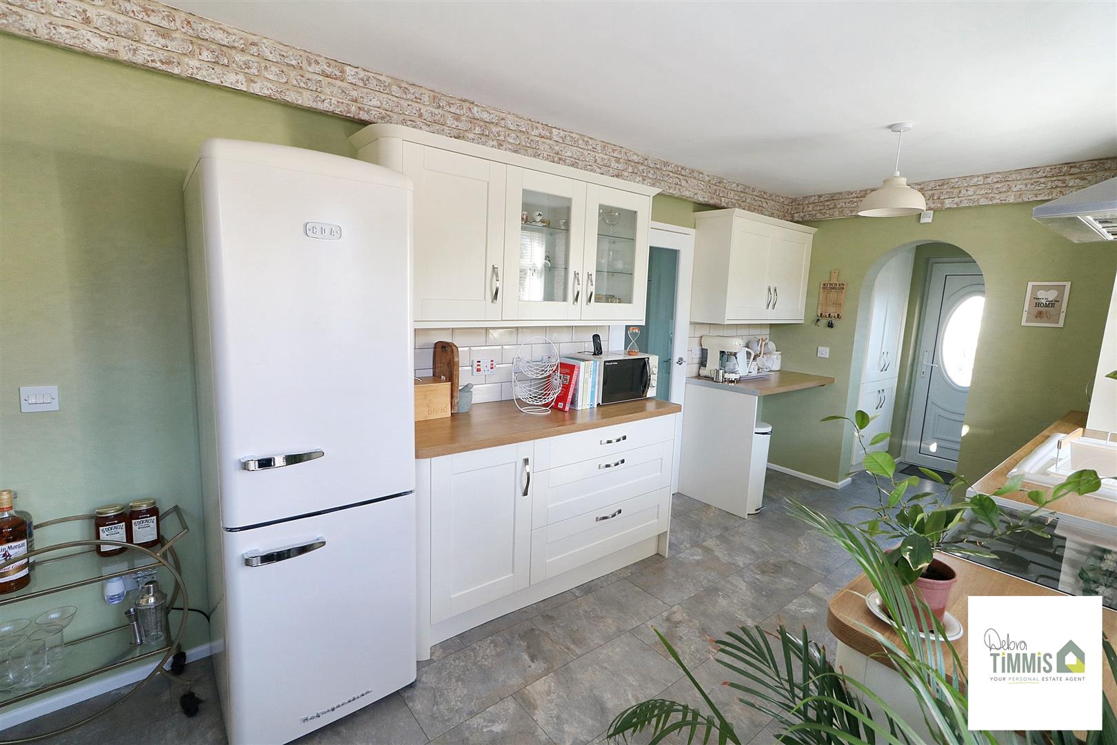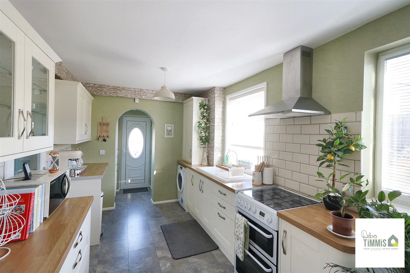 Beautifully presented fitted kitchen with a range of wall mounted units, worktops incorporating drawers and cupboards below. Cupboard housing gas central heating boiler. Ceramic sink with mixer tap. Part tiled splash backs. Plumbing for automatic washing machine. Double glazed windows and double glazed French doors with access into the rear garden. Archway to the WC, useful storage cupboard and Upvc door to the side aspect.