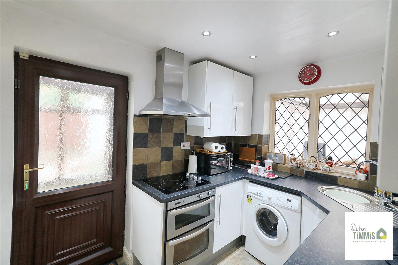 Well presented fitted kitchen with a range of wall mounted units, worktops incorporating drawers and cupboards below. Electric hob, extractor hood above and built-in oven. Inset sink with single drainer. Part tiled splash backs. Radiator. Useful storage cupboard. Plumbing for automatic washing machine. Leaded window to the rear aspect. Side door access to the porch.
